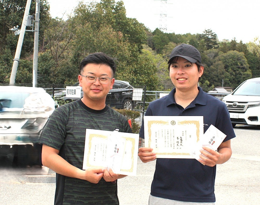 男子優勝の野路・今西ペア(上の写真) 野路さん「あじさい杯と(猪名川)オープンも優勝できるよう頑張ります」、今西さん「運営の方お疲れさまでした」