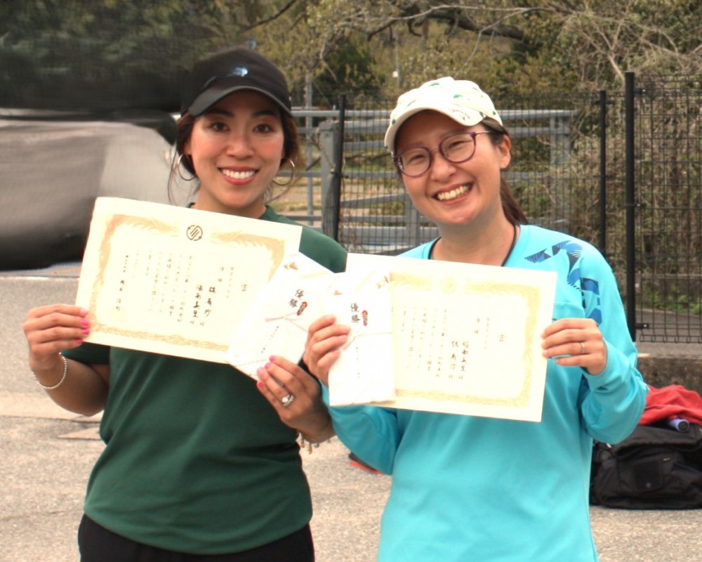 女子優勝の林・福西ペア(上の写真) 「ペアでの初優勝なのでうれしい」